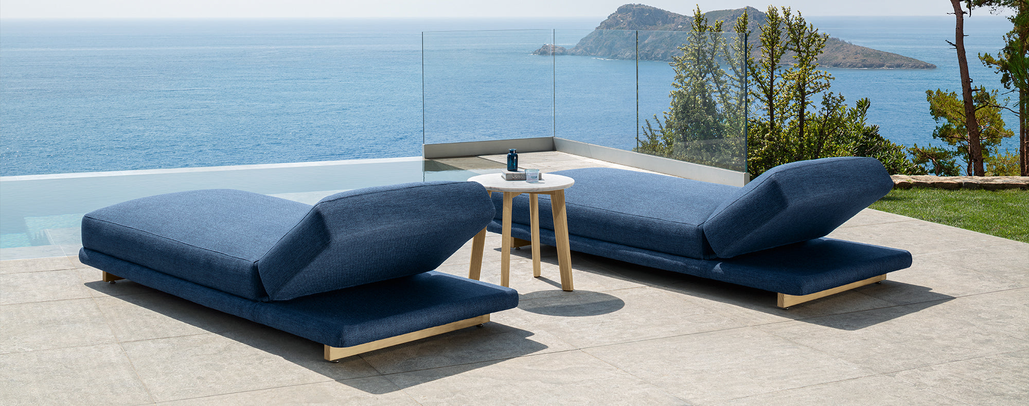 • The Argo sun lounger is designed to offer superior comfort with its voluminous cushion structure and densely textured fabrics.