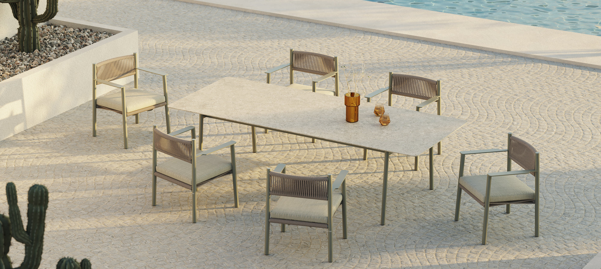 - Dış mekana dayanıklı akrilik ip ve alüminyumdan üretilmiştir.
